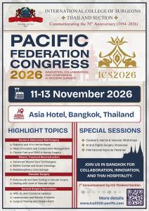 On behalf of the International College of Surgeons (ICS) Thailand Section, it is a profound honor to invite you to the Pacific Federation Congress 2026, held in the heart of Bangkok from 11–13 November 2026.